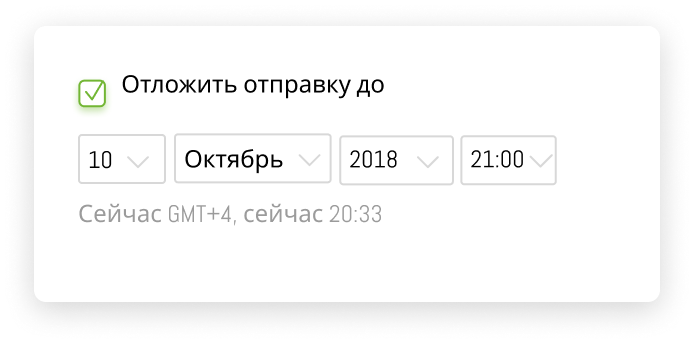 Выбирайте, когда ваши клиенты получат рассылку: рано утром, в выходные или за минуту до боя курантов в новогоднюю ночь. Вы можете запланировать серию рассылок и не переживать о том, что